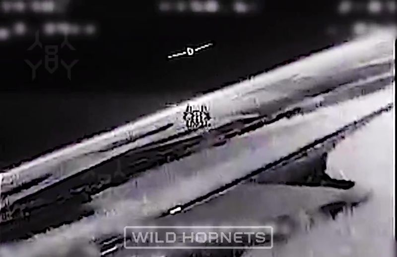 ワイルド・ホーネッツの迎撃ドローンがロシアのシャヘド型自爆ドローンを撃墜する様子。ワイルド・ホーネッツがXで公開した動画より