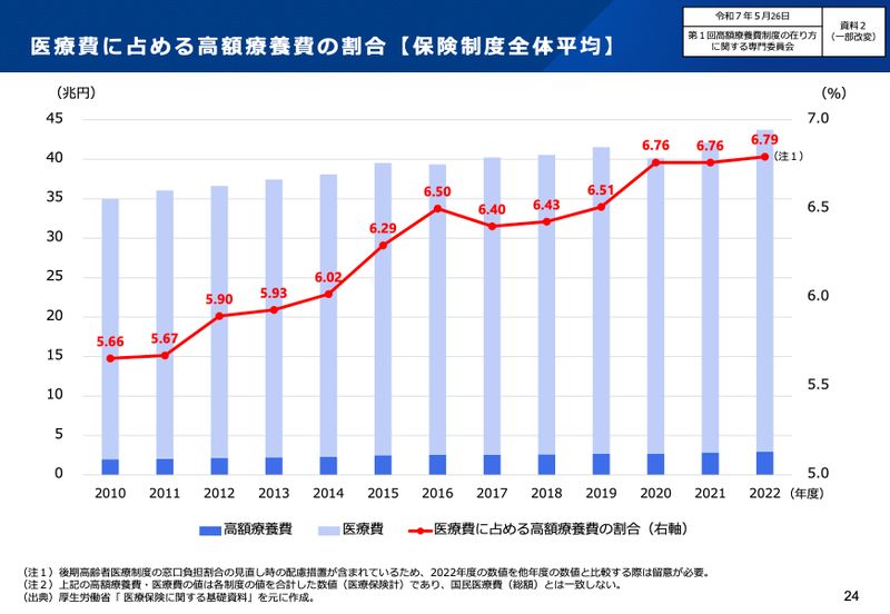 高額医療費の医療費に占める割合(厚労省資料)