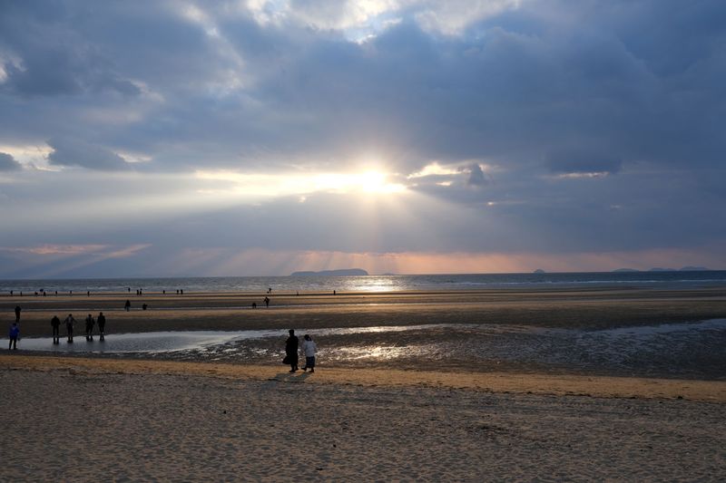 三豊市の仁尾町にある父母ヶ浜。2月の平日でも多くの観光客が訪問。