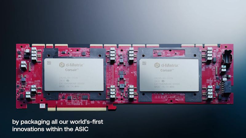 d-MatrixによるAI推論専用アクセラレーター、「Corsair」シリーズ(YouTube上の公式動画より)