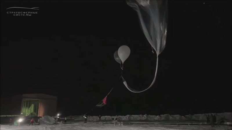ロシアが開発中の気球型5Gプラットフォーム「バラージュ-1」の打ち上げの様子とされる画像。通信アプリ「テレグラム」で共有された動画より