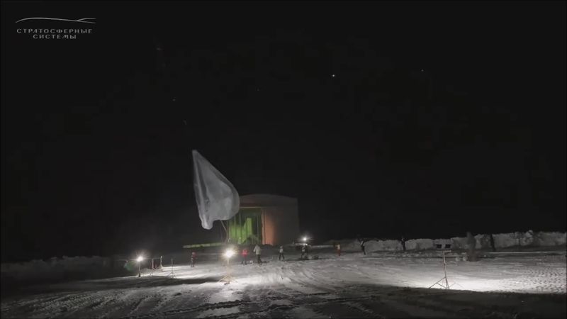 ロシアが開発中の気球型5Gプラットフォーム「バラージュ-1」の打ち上げの様子とされる画像。通信アプリ「テレグラム」で共有された動画より