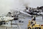 米空母フォレスタルの火災。1967年7月29日、北ベトナム沖にて(UPI/Bettmann Archive/Getty Images)
