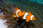 カクレクマノミのメス(左)とオス。群れの中で一番大きい個体がメス、二番目に大きい個体がオスになるという仕組みになっている(Georgette Douwma / Getty Images)