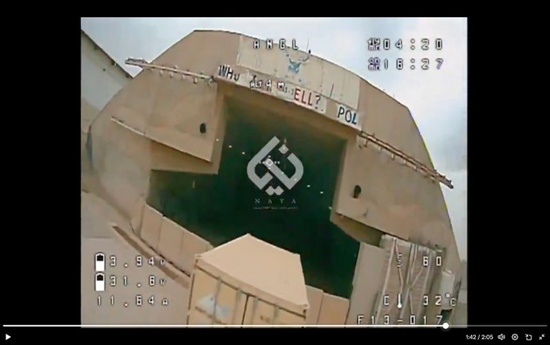 イラクの首都バグダッド郊外のビクトリー基地で、イランの支援を受ける民兵組織カタイブ・ヒズボラのドローンが目標を捜索する様子とみられる画像(Xで共有された動画から)