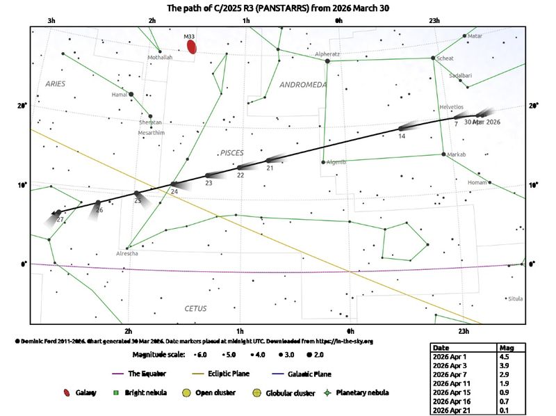 パンスターズ彗星「C/2025 R3(PanSTARRS)」のファインダーチャート(© Dominic Ford, In-The-Sky.com)