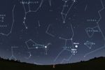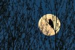 トルコ東部ワンで、枝に止まった鳥の背後に昇る満月。2024年4月22日撮影(Ozkan Bilgin/Anadolu via Getty Images)