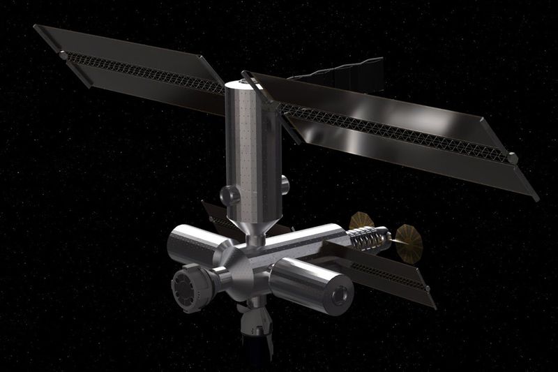 RFI(情報提供依頼)に掲載された政府所有のコアモジュールを中心とした米国新ステーション。ISSからの分離後のイメージ (c)NASA/JSC