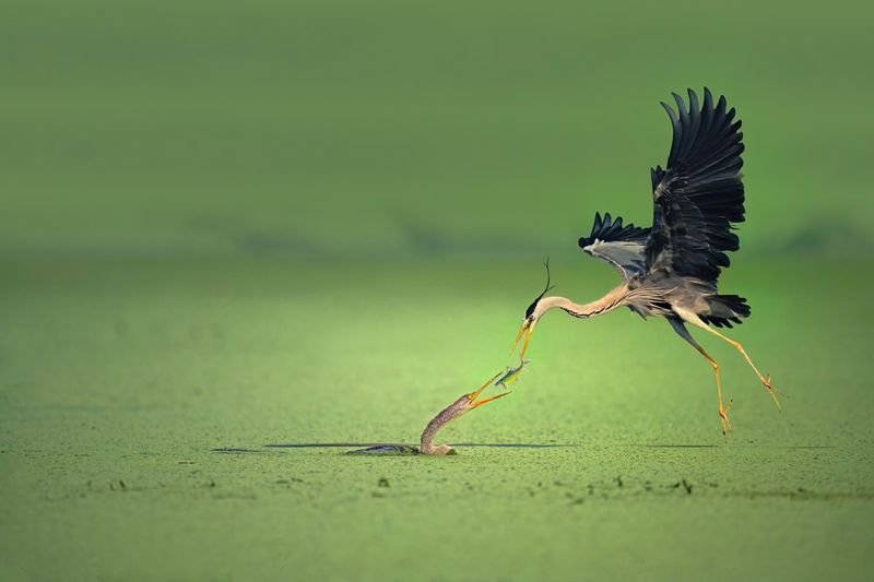 「完璧なる強奪(The Perfect Heist)」。フォトグラファー・オブ・ザ・イヤー金賞、野生動物部門。撮影地:インド・バラトプルの湿地帯 Baiju Patil - World Photo Annual reFocus Awards