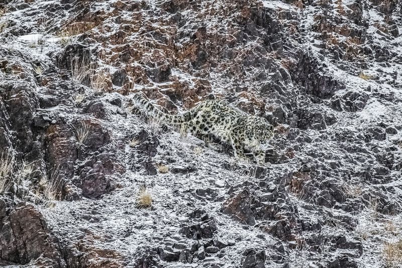 「縄張りに潜むユキヒョウ(Snow Leopard In Her Domain)」。野生動物部門(プロ)銅賞。撮影地:ヒマラヤ山脈に近いインド・ラダック Gero Heine - World Photo Annual reFocus Awards