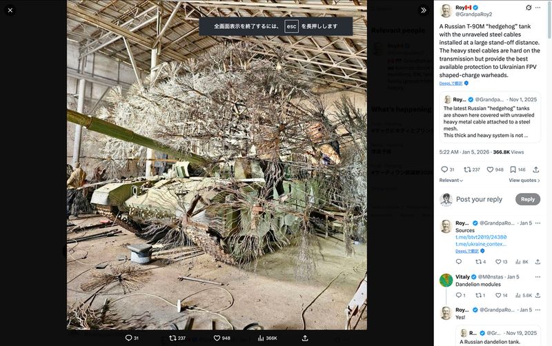 ヤマアラシのように全体を突起物で覆ったりしたM113装甲兵員輸送車(Xのスクリーンショット)
