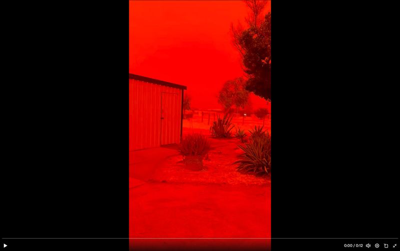 真っ赤に染まった空、オーストラリア。2026年3月29日(Xのスクリーンショット)