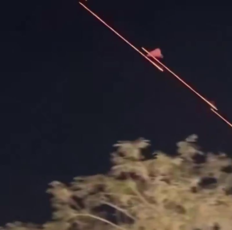 イラクの首都バグダッドにある米国大使館付近で、シャヘド自爆ドローン(無人機)が米軍のセンチュリオンC-RAM対空砲システムで撃墜される様子とされる画像。X(旧ツイッター)で共有された動画より