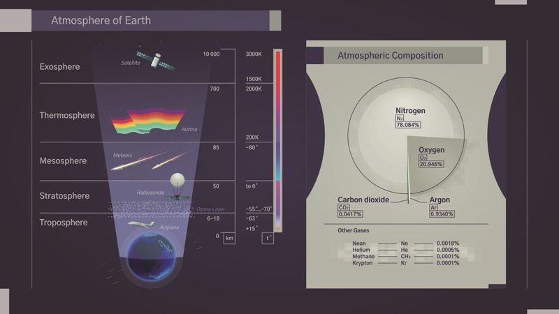 地球の大気構造、地球大気の層の図解(Andrii Pozdniakov/Getty Images)