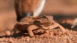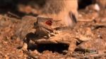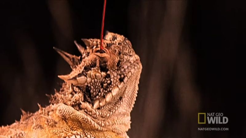 イヌ科の捕食者に対して眼から「血を噴射」するツノトカゲ(YouTubeのスクリーンショット)