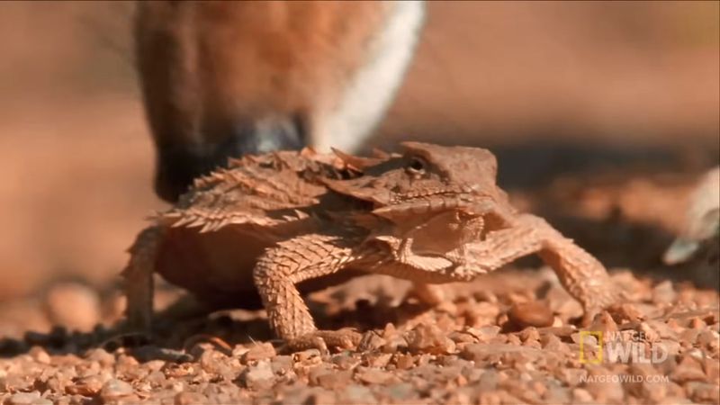 イヌ科の捕食者に対して眼から「血を噴射」するツノトカゲ(YouTubeのスクリーンショット)