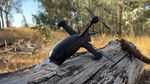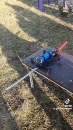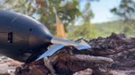 先端に刃を取り付けた「フライングソード(空飛ぶ剣)」と呼ばれる攻撃ドローン(無人機)が人形標的を貫く様子。開発元の英シャドーブレイク・インターナショナル社の幹部がXに投稿した動画から