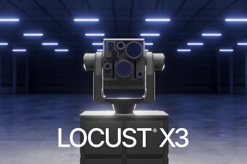 米エアロバイロンメント社が3月に発表したばかりのレーザー式対ドローンシステム「Locust(ローカスト)X3」。アイアンビームよりもさらに低コストで迎撃できると伝えられる(米エアロバイロンメント社がXで共有した動画のスクリーンショット)