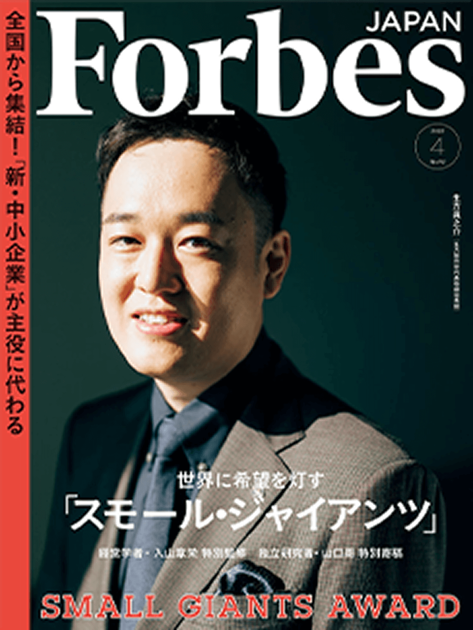 Forbes JAPANは、小さくても高い付加価値を誇る中小企業「 SMALL GIANTS 」を 発掘し、光を当て、世の中に発信することで、このMissionを遂行する。